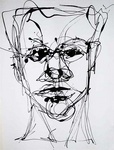 2014lakportret van een lachende man. met losse draad wordt getekent zonder de drager te raken.